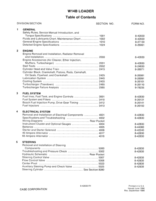 Case W14B Loader Pdf Repair Service Manual (Pb. No. 8-42830)