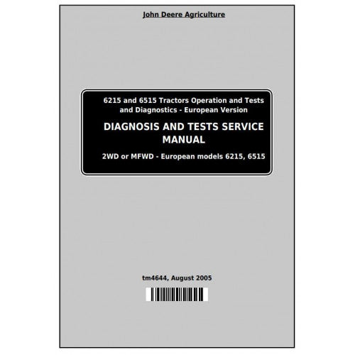 It is Factory Diagnosis and Tests Service Manual for John Deere 2WD or MFWD - European Tractors 6215 and 6515