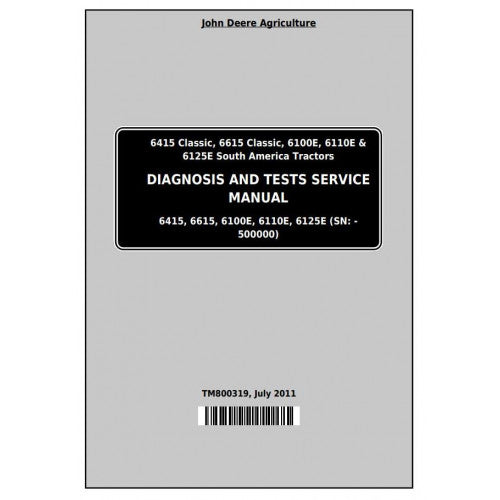 It is Factory Diagnosis and Tests Service Manual for John Deere South America Tractors 6415 Classic, 6615 Classic, 6100E, 6110E, 6125E