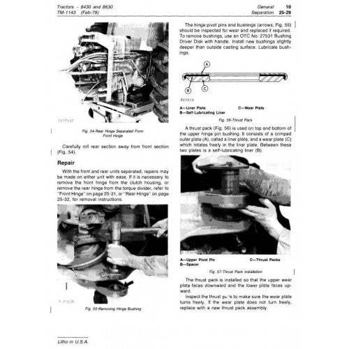 John Deere 8430, 8630 4WD Articulated Tractor Technical Service Manual TM1143