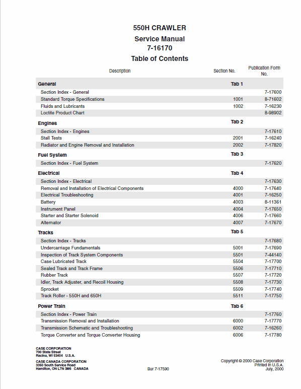 Case 550H Crawler Dozer Bulldozer Pdf Repair Service Manual (Pb. No. 7-16170)