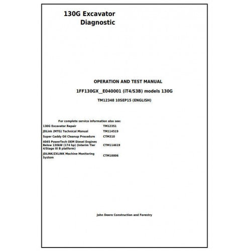 It is Factory Operation and Test Service Manual for John Deere (iT4/S3B) Excavator 130G