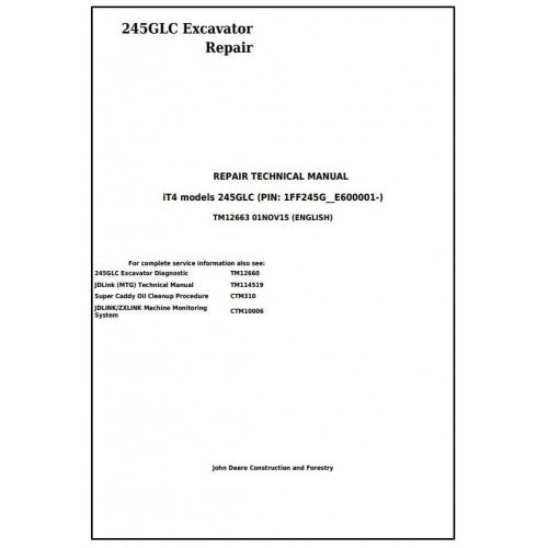 It is Factory Service Repair Technical Manual for John Deere (iT4) Excavator 245GLC