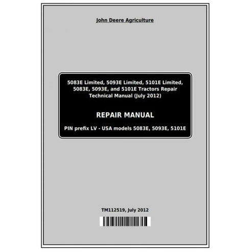 This manual Simplify the process of Service and repair work for your John Deere equipment. Get our John Deere 5083E, 5093E, 5101E Tractor Service Repair Technical Manual Pdf - TM112519 today!
