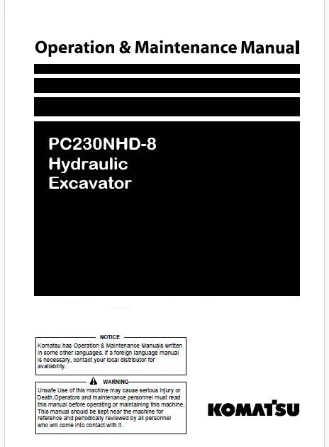 Komatsu PC230NHD-8 Hydraulic Excavator Pdf Operation and Maintenance Manual