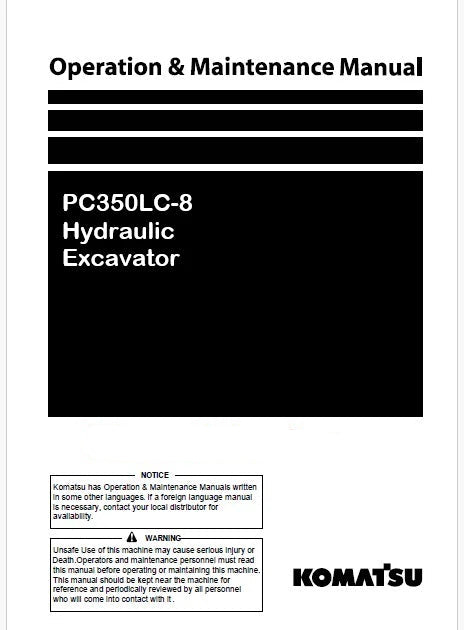 The Komatsu PC350LC-8 Hydraulic Excavator is a versatile, high-performance machine built for demanding tasks in construction, landscaping, and excavation. Its advanced hydraulic system and robust engine require proper operation and maintenance to ensure reliability and efficiency. This manual empowers you to: