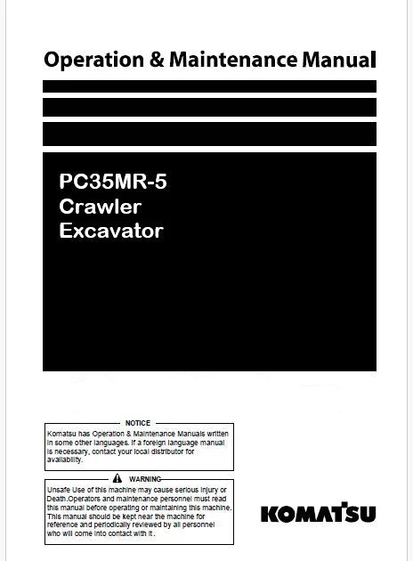Instant Download your Komatsu PC35MR-5 Crawler Excavator Operator's manual PDF instantly at affordable price and start reducing downtime today.