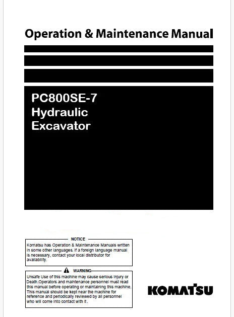 Instant Download your Komatsu PC800SE-7 Hydraulic Excavator Operator's manual PDF instantly at affordable price and start reducing downtime today.
