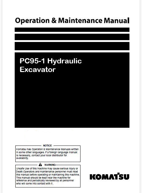 1. Enhance the performance and reliability of your Komatsu PC95-1 Hydraulic Excavator with our detailed Operation and Maintenance Manual in PDF format. This comprehensive guide equips you with all the essential information for proper upkeep and efficient operation.