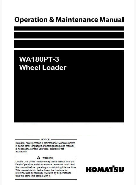 1. Enhance the performance and reliability of your Komatsu WA180PT-3 Wheel Loader with our detailed Operation and Maintenance Manual in PDF format. This comprehensive guide equips you with all the essential information for proper upkeep and efficient operation.
