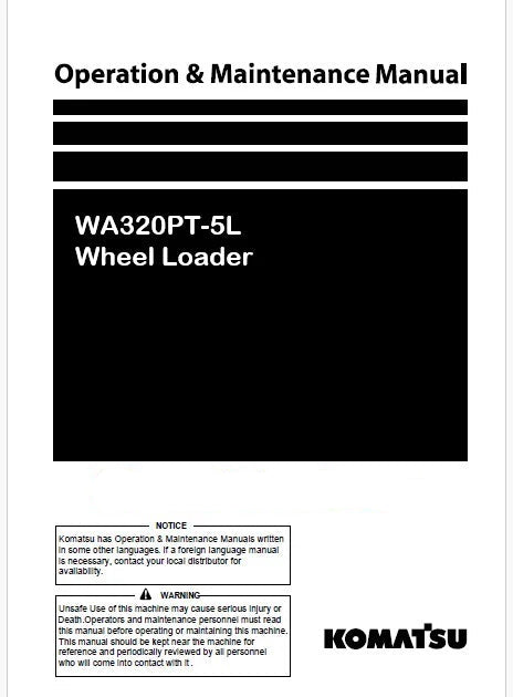1. Enhance the performance and reliability of your Komatsu WA320PT-5L Wheel Loader with our detailed Operation and Maintenance Manual in PDF format. This comprehensive guide equips you with all the essential information for proper upkeep and efficient operation.