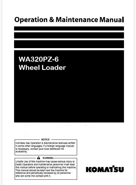 1. Enhance the performance and reliability of your Komatsu WA320PZ-6 Wheel Loader with our detailed Operation and Maintenance Manual in PDF format. This comprehensive guide equips you with all the essential information for proper upkeep and efficient operation.
