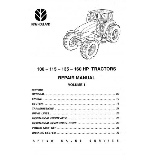 New Holland 100 115 135 160 HP Tractor Pdf Repair Service Manual Vol 1 (P. Nb. 6035432100)