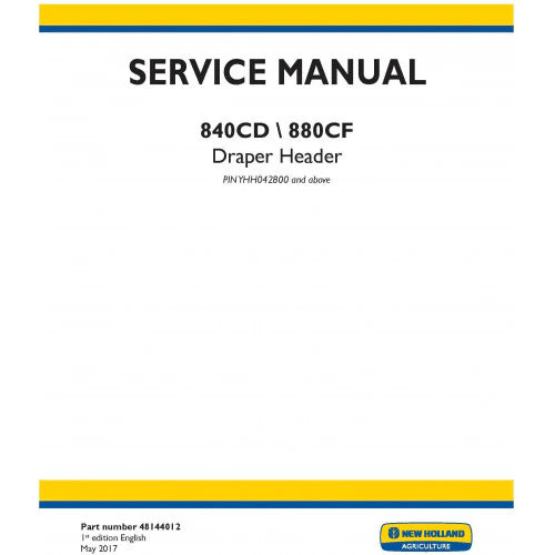 New Holland 840CD, 880CF Draper Header Pdf Repair Service Manual (p. Nb. 48144012)