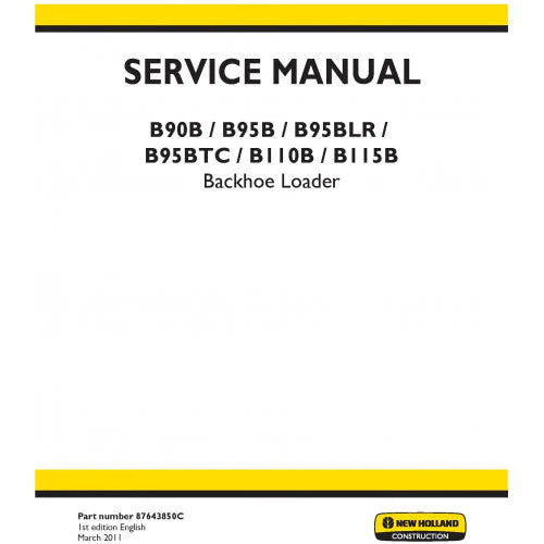 New Holland B90B, B95B, B95BLR, B95BTC, B110B, B115B Backhoe Loader Pdf Repair Service Manual (p. Nb. 87643850c)