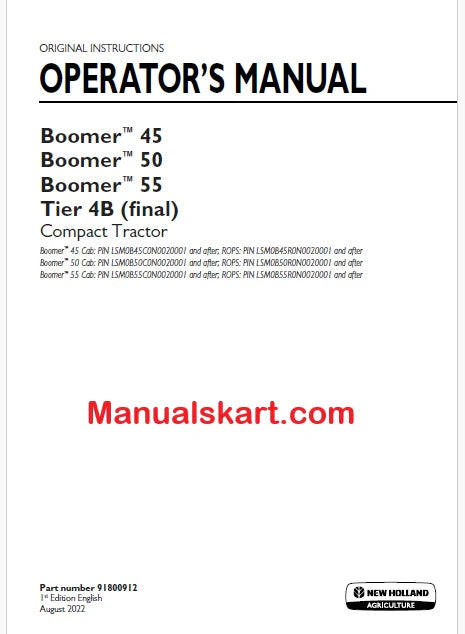 New Holland Boomer 45, Boomer 50, Boomer 55 Compact Tractor Pdf Operator's Manual Tier 4B (final)