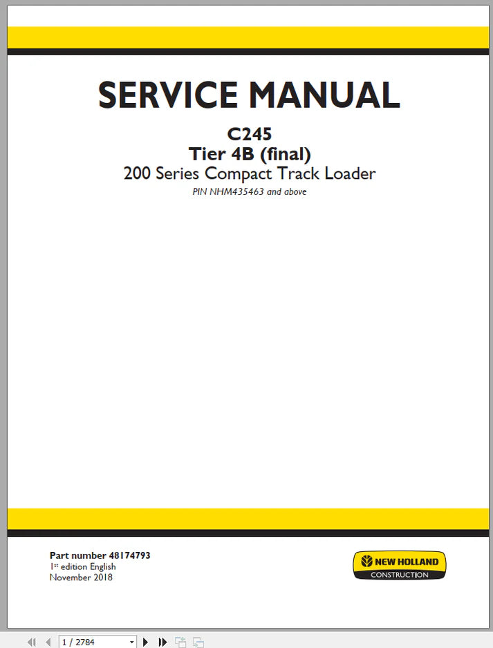New Holland C245 Compact Track Loader Pdf Repair Service Manual (Tier 4b)