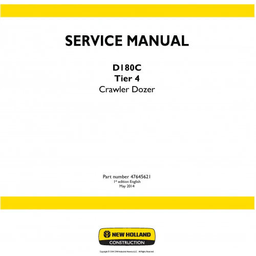 New Holland D180C Crawler Dozer Pdf Repair Service Manual (p. Nb. 47645621) Tier 4