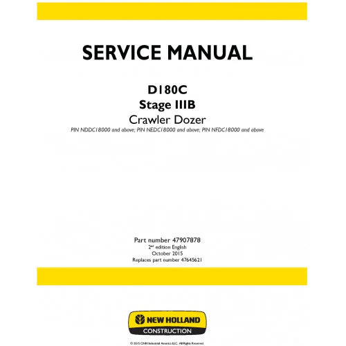 New Holland D180C Crawler Dozer Pdf Repair Service Manual (p. Nb. 47907878) (Pin Nddc18000 And Above) Stage IIIB