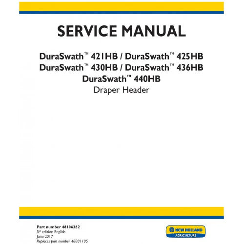 New Holland Duraswath 421HB, Duraswath 425HB, Duraswath 430HB, Duraswath 436HB, Duraswath 440HB Draper Header Pdf Repair Service Manual (p. Nb. 48106362)
