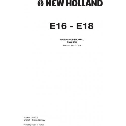 New Holland E16, E18 Excavator Pdf Repair Service Manual (p. Nb. 60413396)