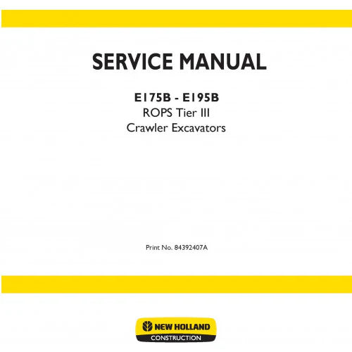 New Holland E175B, E195B Crawler Excavators Pdf Repair Service Manual (p. Nb. 84392407a) (Rops Tier III)