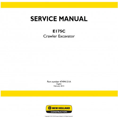 New Holland E175C Crawler Excavator Pdf Repair Service Manual (P. Nb. 47494131A)