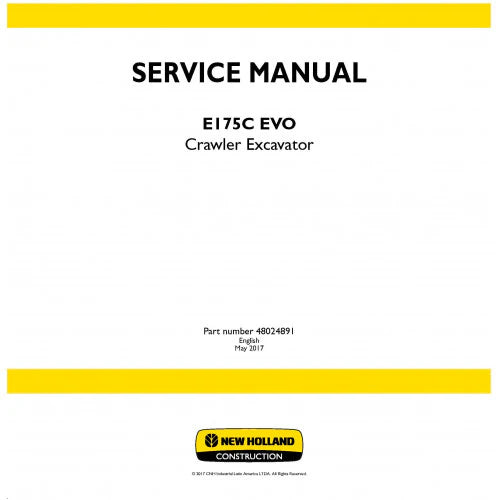 New Holland E175C Evo Crawler Excavator Pdf Repair Service Manual (p. Nb. 48024891)