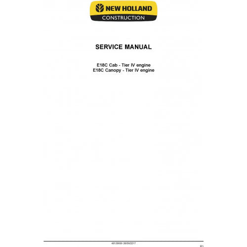 New Holland E18C Mini Excavator Pdf Repair Service Manual (p. Nb. 48139696) (Cab & Canopy Tier 4 Engine)
