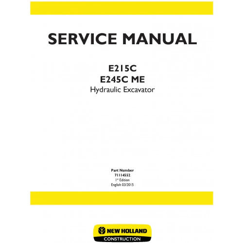 New Holland E215C, E245C ME Hydraulic Excavator Pdf Repair Service Manual (p. Nb. 71114552)