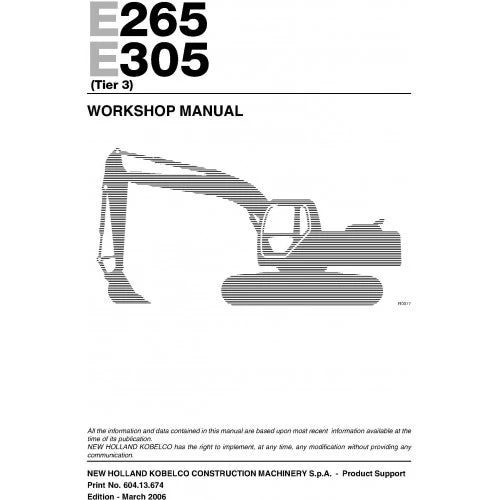New Holland E265, E305 Excavator Pdf Repair Service Manual (p. Nb. 60413674) (Tier 3)