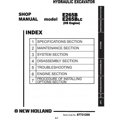 New Holland E265B E265BLC Hydraulic Excavator Pdf Repair Service Manual (p. Nb. 87731200)