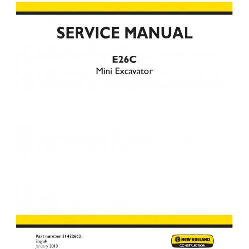 New Holland E26C Mini Excavator Pdf Repair Service Manual (p. Nb. 51422603)
