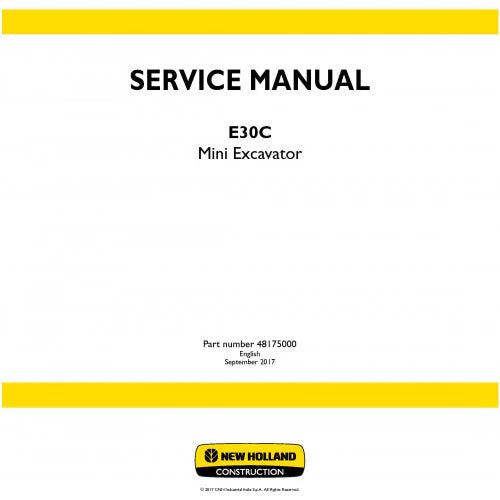 New Holland E30C Mini Excavator Pdf Repair Service Manual (p. Nb. 48175000)