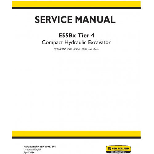 New Holland E55BX Compact Hydraulic Excavator Pdf Repair Service Manual (p. Nb. S5hs0013e01) (Pin Netn55001 - Ps04-10001 And Above) Tier 4