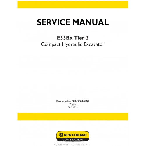 New Holland E55BX Compact Hydraulic Excavator Pdf Repair Service Manual (p. Nb. S5hs0014e01)