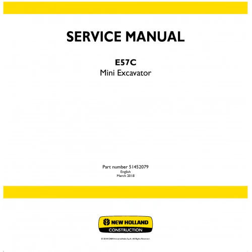 New Holland E57C Mini Excavator Pdf Repair Service Manual (p. Nb. 51452079)