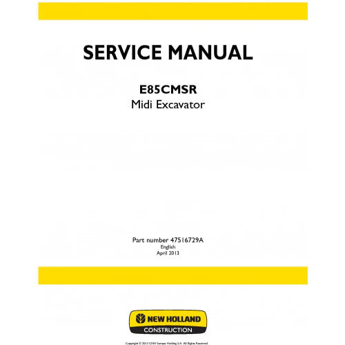 New Holland E85CMSR Midi Excavator Pdf Repair Service Manual (p. Nb. 47516729a)