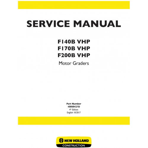 New Holland F140B VHP, F170B VHP, F200B VHP Motor Graders Pdf Repair Service Manual (p. Nb. 48050427D)