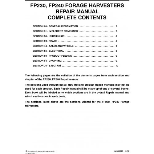 New Holland FP230, FP240 Forage Harvesters Pdf Repair Service Manual (p. Nb. 86900642)
