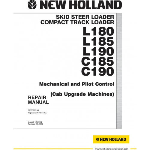 New Holland L180, L185, L190 Skid Steer Loader and C185, C190 Compact Track Loader Pdf Repair Service Manual Na (p. Nb. 87630288NA)