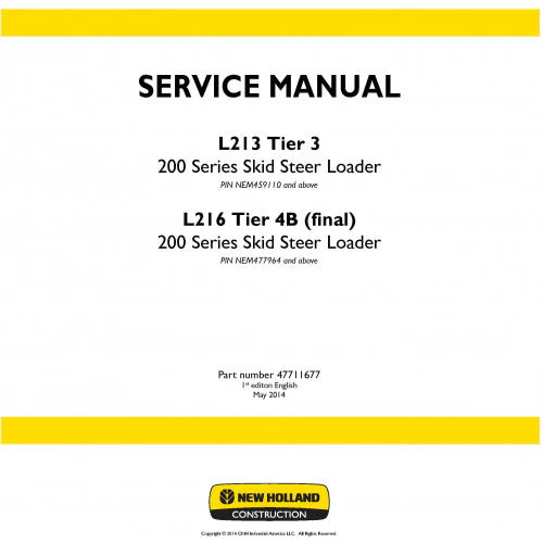 New Holland L213 (TIER 3), L216 (TIER 4B FINAL) Skid Steer Loader 200 Series Pdf Repair Service Manual (p. Nb. 47711677)