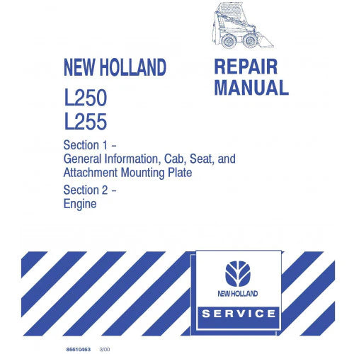 New Holland L250, L255 Skid Loader Pdf Repair Service Manual (p. Nb. 86610462)