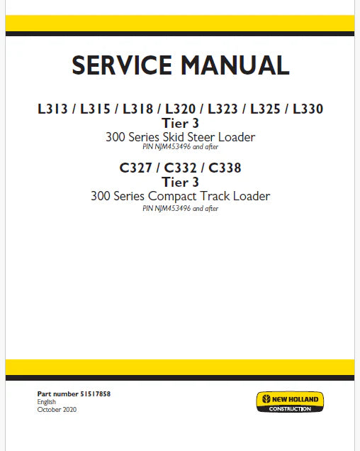 New Holland L313, L315, L318, L320, L323, L325, L330 Skid Steer Loader Pdf Repair Service Manual (Tier 3)