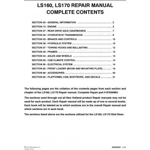 New Holland LS160, LS170 Skid Steer Loader Pdf Repair Service Manual (p. Nb. 87036983)