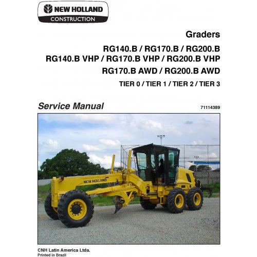 New Holland RG140.B VHP, RG170.B VHP, RG200.B VHP Graders Pdf Repair Service Manual (p. Nb. 71114389) (Tier 0, Tier 1, Tier 2, Tier 3)