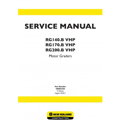 New Holland RG140.B VHP, RG170.B VHP, RG200.B VHP Motor Graders Pdf Repair Service Manual (p. Nb. 48050423d)
