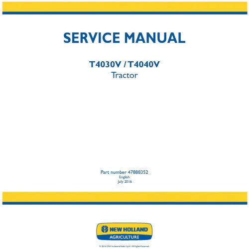 New Holland T4030V, T4040V Tractor Pdf Repair Service Manual (p. Nb. 47888352)