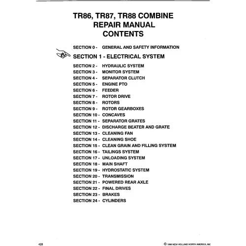 New Holland TR86, TR87, TR88 Combine Pdf Repair Service Manual (p. Nb. 40008630)