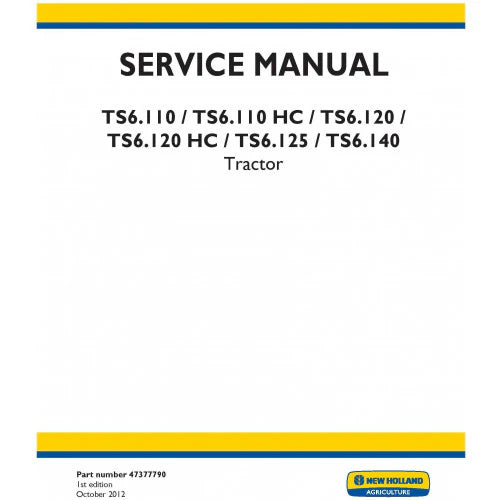This manual Simplify the process of Service and repair work for your New Holland TS6.110 (HC), TS6.120, TS6.120HC, TS6.125, TS6.140 Tractor Pdf Repair Service Manual today!
